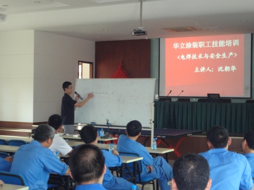 7月24日,刚过农历“大暑”,气温高达35℃,下午二点,华立涂装的车间一线员工全部集中至职工活动中心参加职业技能培训,由湖州技师学院的教师为大家讲授《电焊技术与安全生产》。 早在年初,华立涂装工会就计划将2010年度的职工技能培训安排在7-8月,原因之一就是为了工人能在高温季节避开高温时段,适当避暑休息。此次,适逢华立涂装职工技能学校组建,以及县总工会帮扶助教进企活动,华立涂装工会组织了全厂当班的车间工人参加了培训,邀请了技师学院的专业讲师来授课,一方面提高员工的职业技能理论水平,一方面避开高温作业。当日,共计42名一线员工参加了培训,公司工会为员工们提供了空调会议室和矿泉水, 教师为大家讲解了实用的职业技能知识和安全生产知识,员工们积极参与了课堂学习互动,整个培训在清凉的学习环境和热烈的学习氛围中进行。 职工技能培训计划是华立涂装创建劳动关系和谐企业的工作之一,华立涂装工会还将在今年夏季安排“电工技能与安全生产”、“职业技能鉴定考级”等多项培训,旨在通过职业技能的培训学习,强化职工的劳动技能综合素质,增强职工的职业自信,同时,也促进公司产品质量的精益求精,进一步提高公司在涂装行业中的综合竞争力。