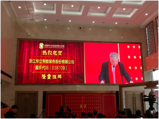 2016年9月22日,第570期集体挂牌仪式在全国中小企业股份转让系统有限责任公司成功举行,华立智能高管领导、政府相关领导嘉宾、主办券商领导嘉宾等参加了此次的挂牌仪式。华立智能董事长吕春华先生在仪式上作了精彩的致辞,敲响了挂牌的钟声。公司董事长在致辞中说:“这次的成功挂牌,公司将迎来新的发展契机,我们将抓住机遇,推动企业更上一层楼。”